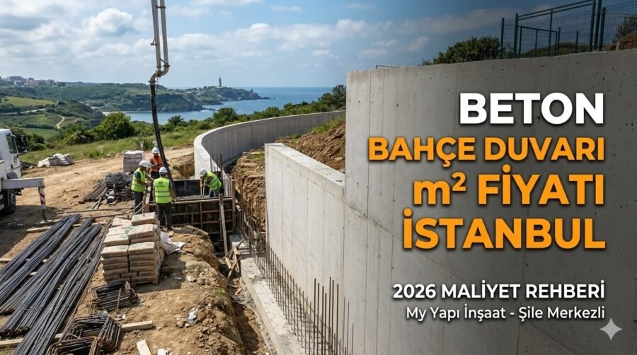 2026 yılı başı itibarıyla İstanbul’da, özellikle Şile ve çevresindeki müstakil projeler baz alındığında, standart bir beton bahçe duvarının m² birim fiyatı 1.900 TL ile 3.100 TL arasında değişkenlik göstermektedir. Bu fiyat; duvarın yüksekliğine (ortalama 1.5m – 2m), temel derinliğine, kullanılan demir donatı miktarına ve C25/30 beton sınıfına göre belirlenmektedir. Hafriyat ve nakliye giderleri genellikle bu fiyata dahil değildir.