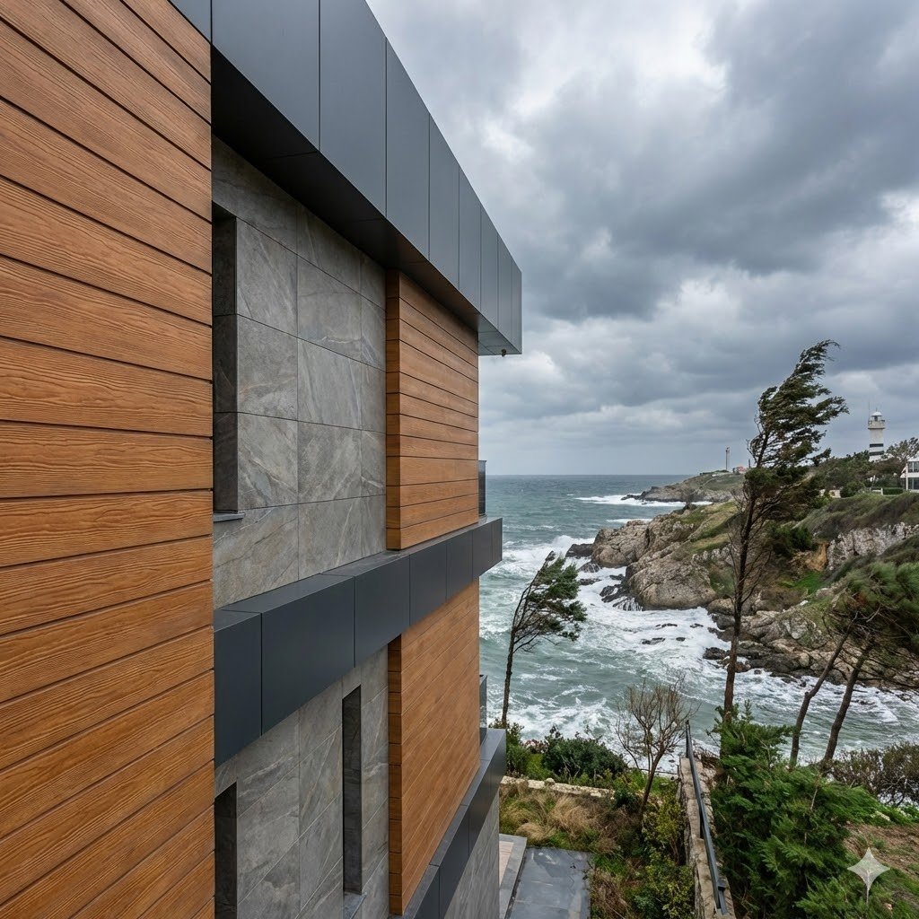 Şile’nin muhteşem doğasıyla uyumlu bir ev hayal edildiğinde, akla ilk gelen genellikle ahşap dokulu, sıcak ve davetkar dış cephelerdir. Ancak Şile gibi nem oranının %80’lerin altına nadiren düştüğü ve denizden gelen tuzlu iyotun metali korozyona, ahşabı ise çürümeye zorladığı bir bölgede, gerçek ahşap kullanmak ciddi bir bakım maliyeti ve risk demektir. İşte tam bu noktada Fiber Cement (Lifli Çimento Levha) teknolojisi devreye girer. Betonun dayanıklılığı ile doğal dokuların estetiğini birleştiren bu sistem, Şile’deki yapı sahiplerine hem hayallerindeki görünümü sunar hem de on yıllar boyunca boya dışında bakım gerektirmeyen bir konfor sağlar.