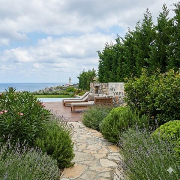- Aydınlatma Tasarımı: Geceleri bahçenizin derinliğini ortaya çıkaran, deniz havasına dayanıklı korozyon önleyicili LED armatürler.